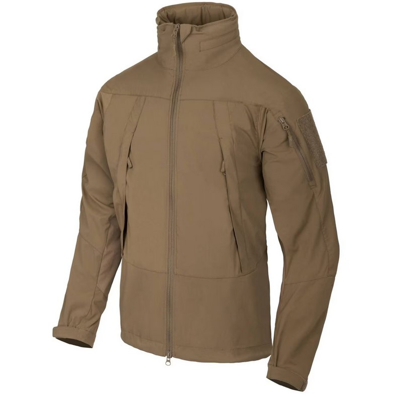 Helikon-Тех BLIZZARD Jacket® - це легка та універсальна куртка, яка, завдяки унікальним властивостям StormStretch® (високотехнологічний нейлоновий матеріал з зовнішнім покриттям DWR), забезпечить належний захист від несприятливих погодних умов. У разі фізичних навантажень, відводить назовні надлишкове тепло і вологу, створюючи комфортну температуру тіла. Прихований в комірі капюшон, легко витягується назовні і регулюється за допомогою шоккорда з фіксаторами. Шість кишень дозволять зручно розмістити необхідні речі. Великим плюсом є вентильовані пахви, які регулюються за допомогою блискавок. Куртка легко піддається стисненню і компактно складається в кишеню Сargo або рюкзак.