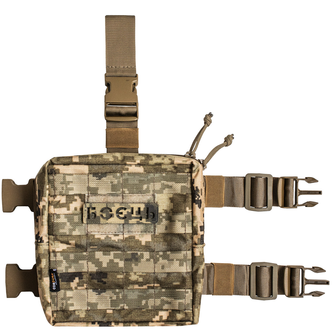 Підсумок із одним містким відділенням стане надійним помічником у будь-якій ситуації. Завдяки зручному кріпленню на ремінь і двом фастекс-застібкам навколо стегна, підсумок надійно фіксується та адаптується під будь-яку комплекцію.