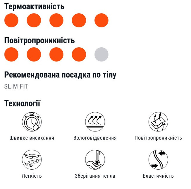 Термобілизна вироблена з інноваційної тканини Polarheat quadro stretch PRO, яка ідеально підходить для створення естетичного, функціонального та високотехнологічного одягу для активного використання.
